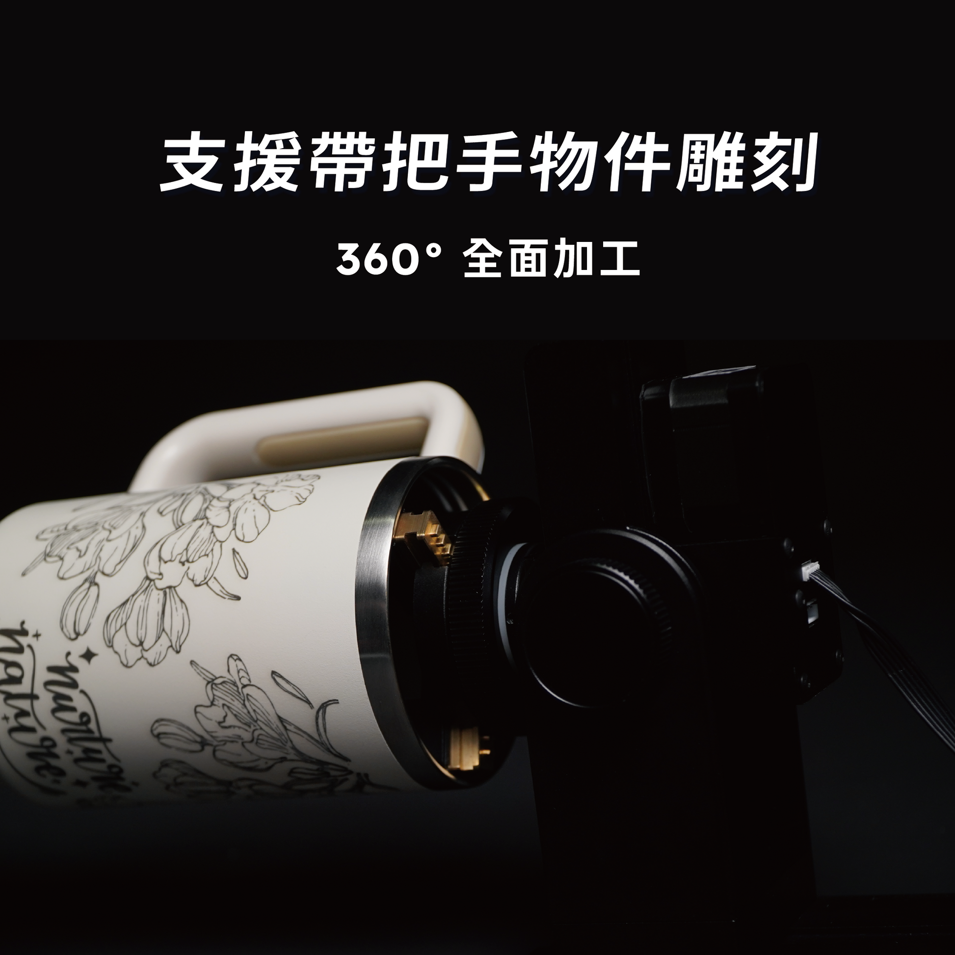 ✓ 支援雕刻列印圓形 / 錐形 / 環形物件以及帶把手物件